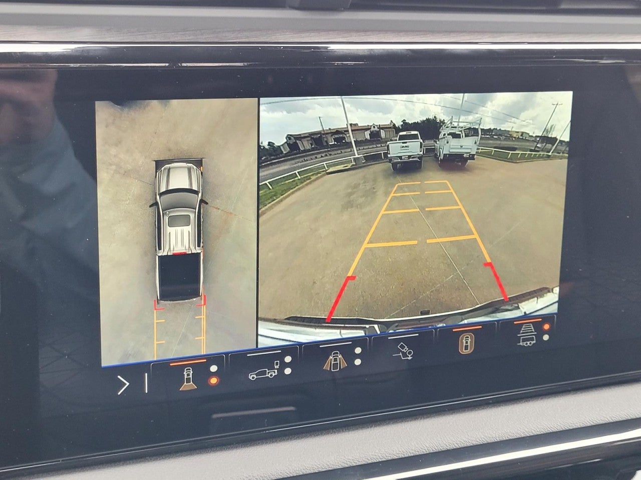 - Allows driver to see inside the cargo bed on the infotainment display to help with 5th wheel or gooseneck hitching and to check cargo